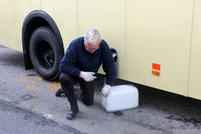 Efter lite felkörningar kom vi så fram till museet och där togs bussen in för att tvättas. Även om den var skinnande ren i går så hann det bli lite damm på vägen.